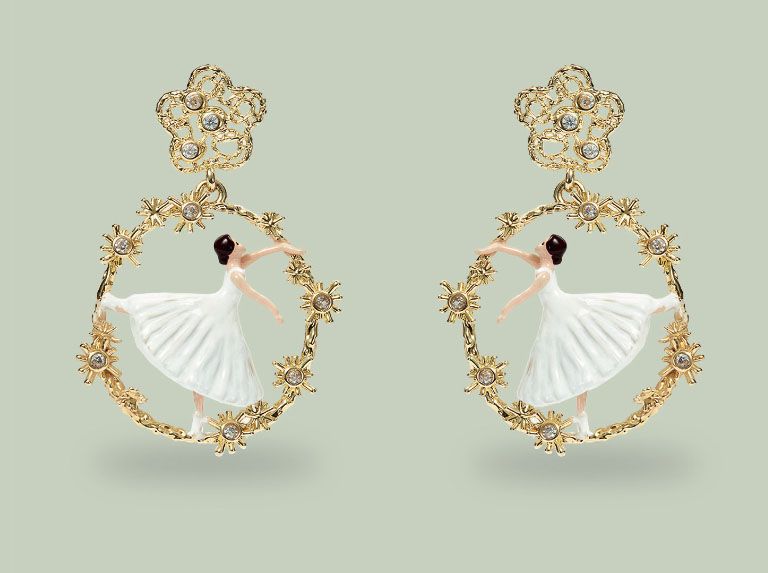 Le loro collezioni narrano storie che si intrecciano armoniosamente tra i diversi elementi, nulla è lasciato al caso; ogni singolo bijoux nasce da un disegno accurato, come un’opera d’arte realizzata artigianalmente, dipinta a mano con l’impiego di smalti e pietre preziose su una base di ottone placcato oro. Il dettaglio, floreale o animale, è meticolosamente colorato a pennello, con grande maestria ed una scelta cromatica impeccabile.